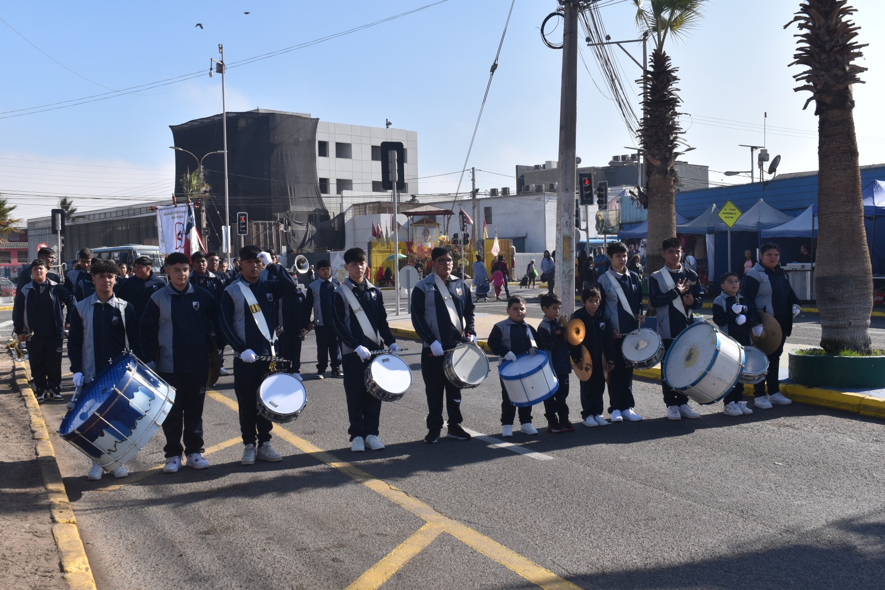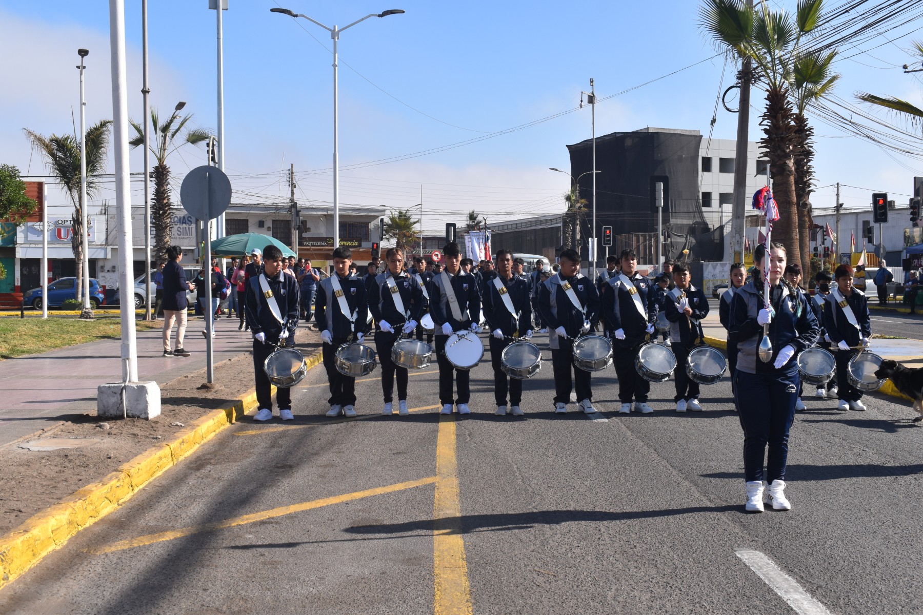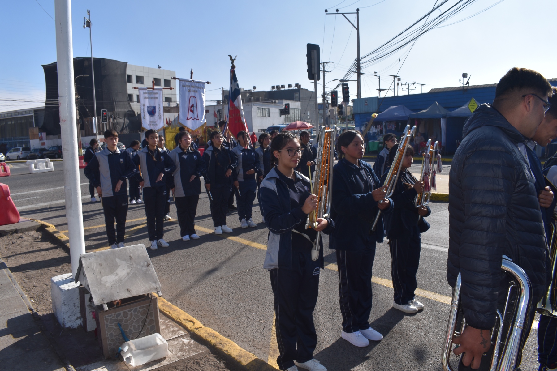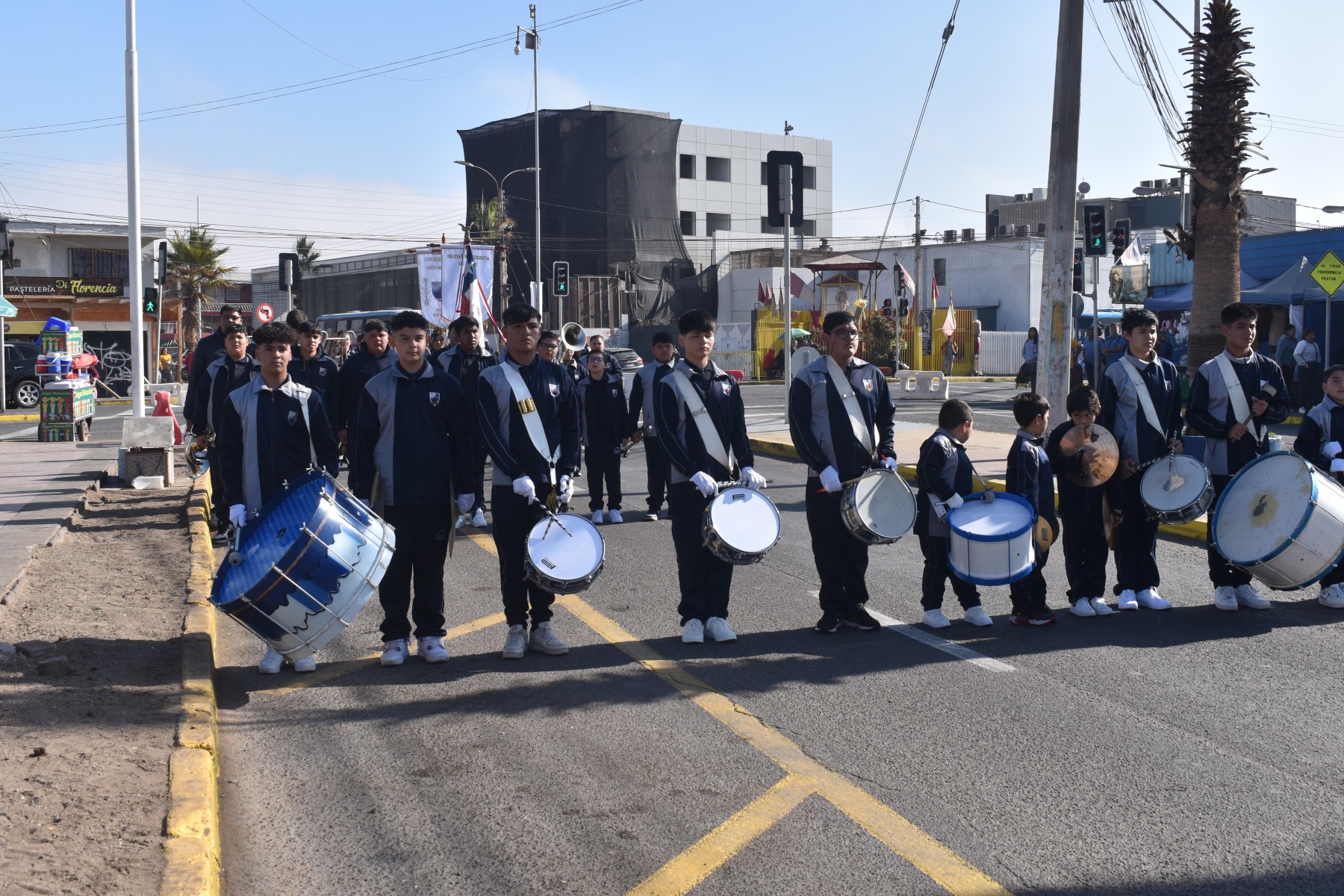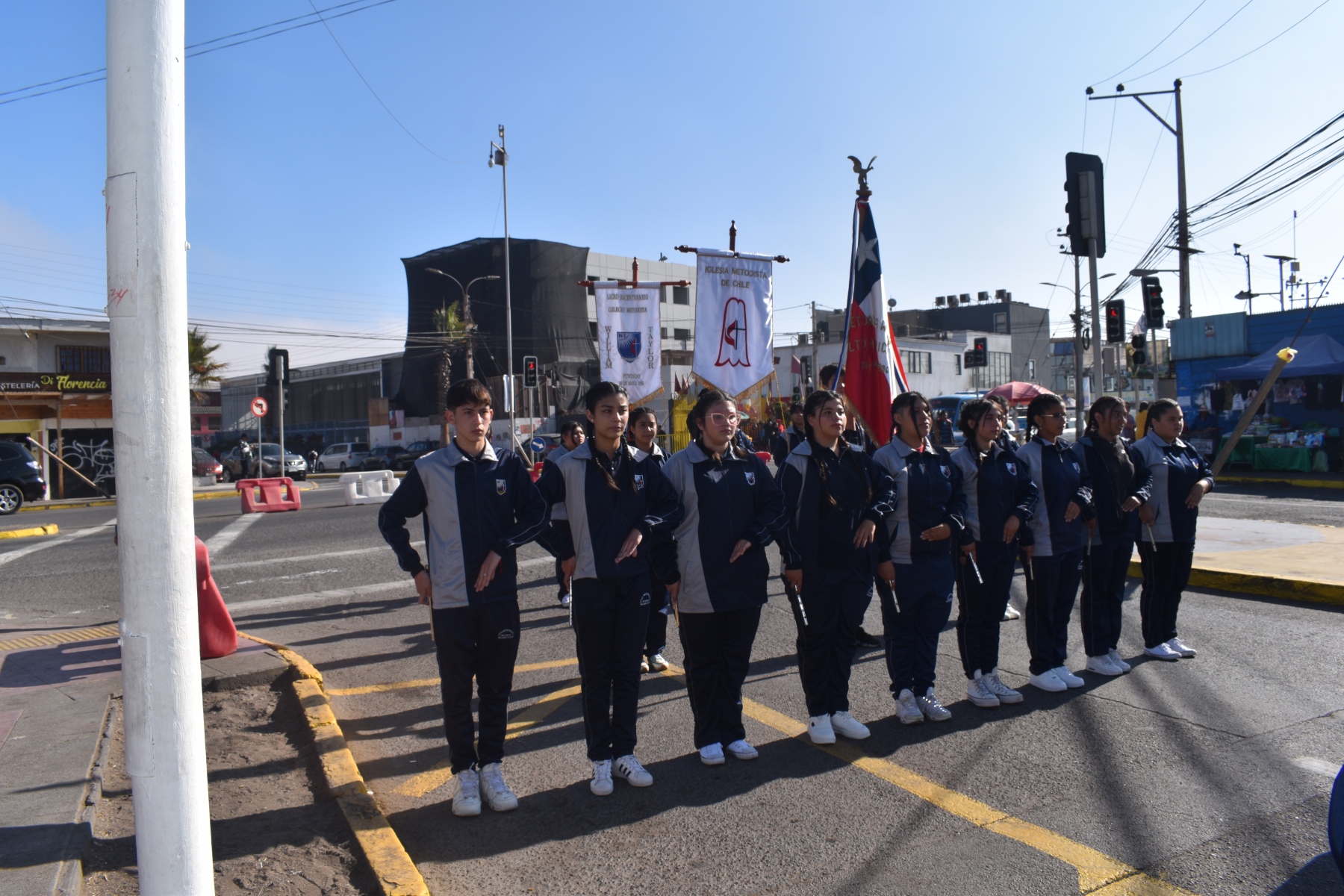 Este martes, la banda guerra de nuestro establecimiento en conjunto con los estudiantes abanderados, participaron con gran entusiasmo en el ensayo para el desfile en honor a las Glorias Navales.