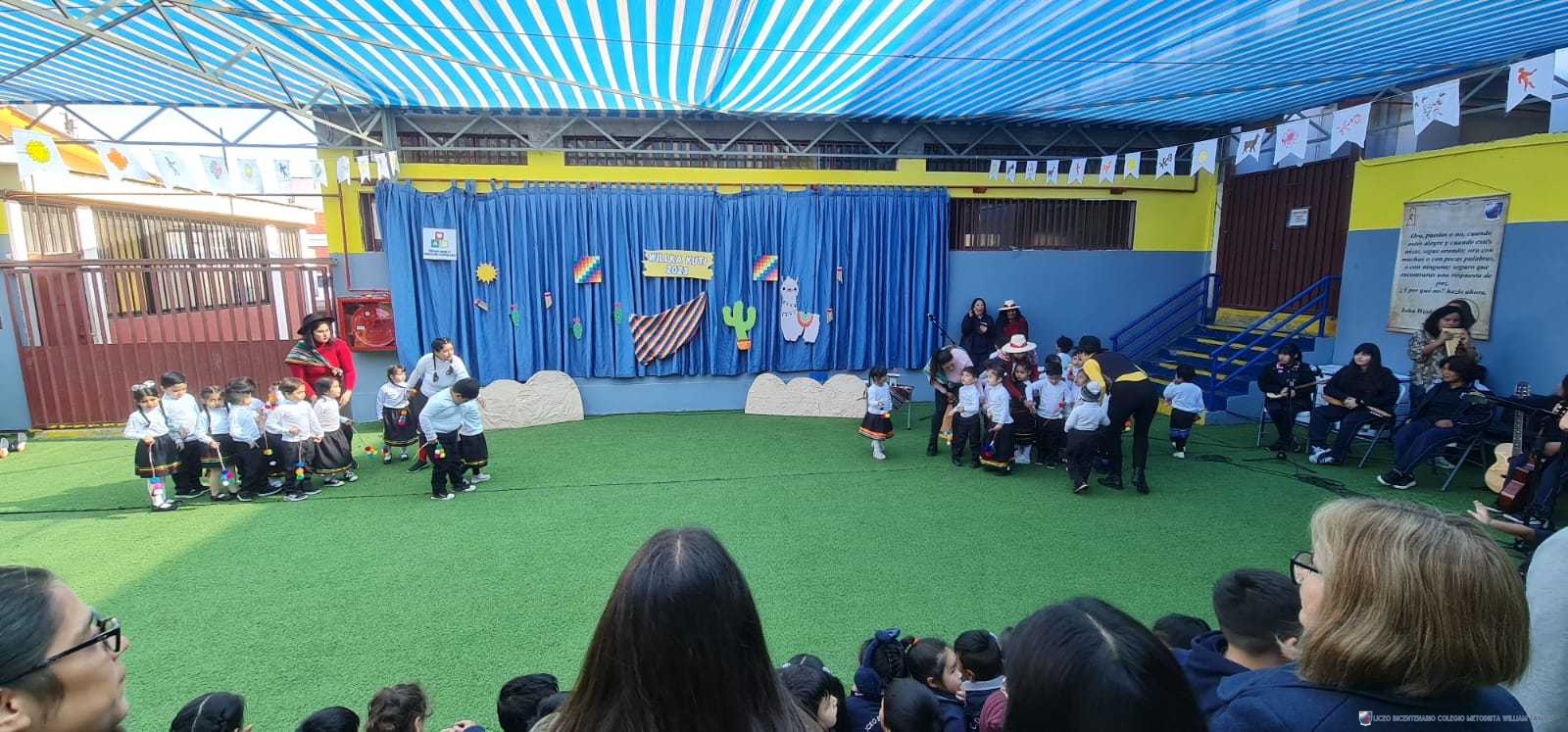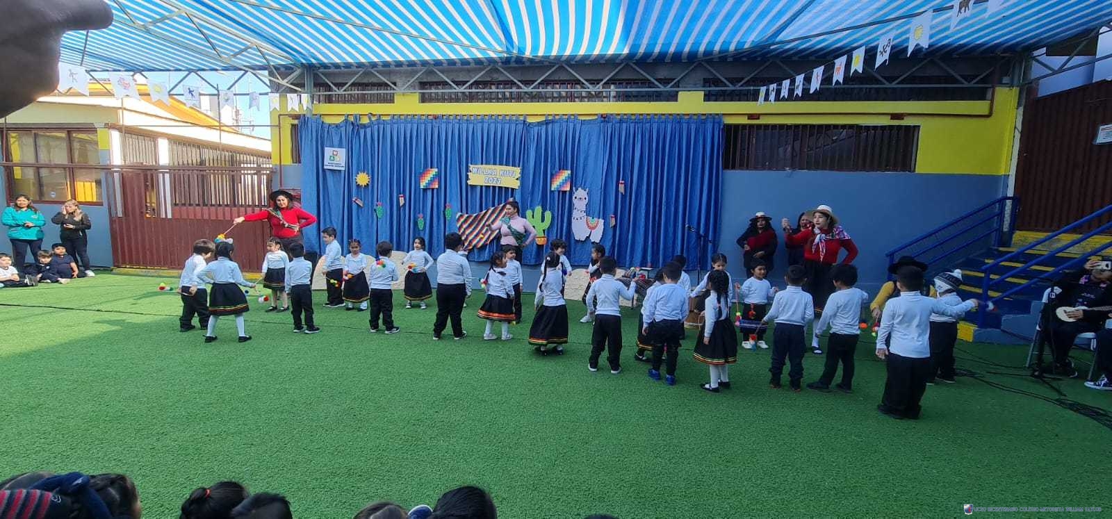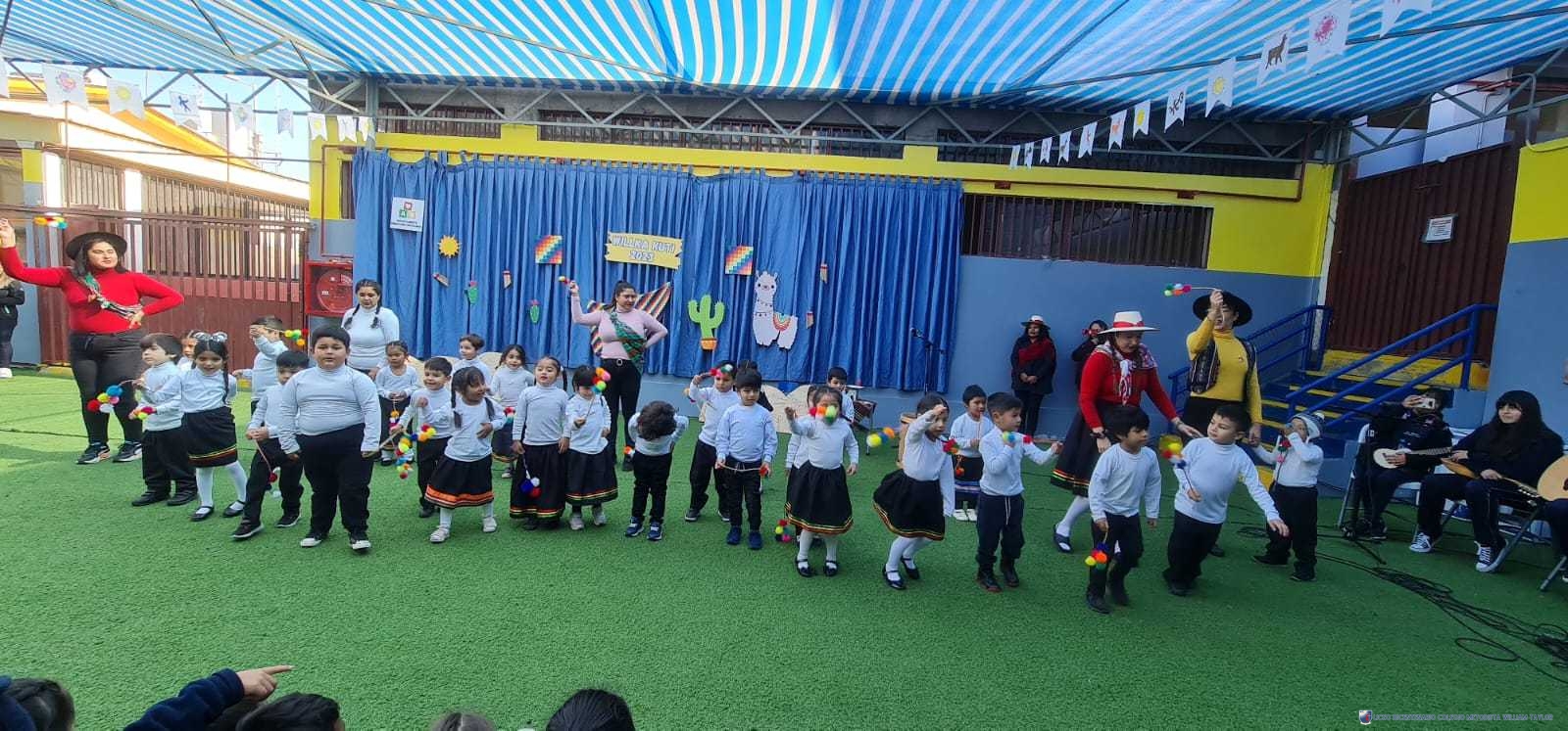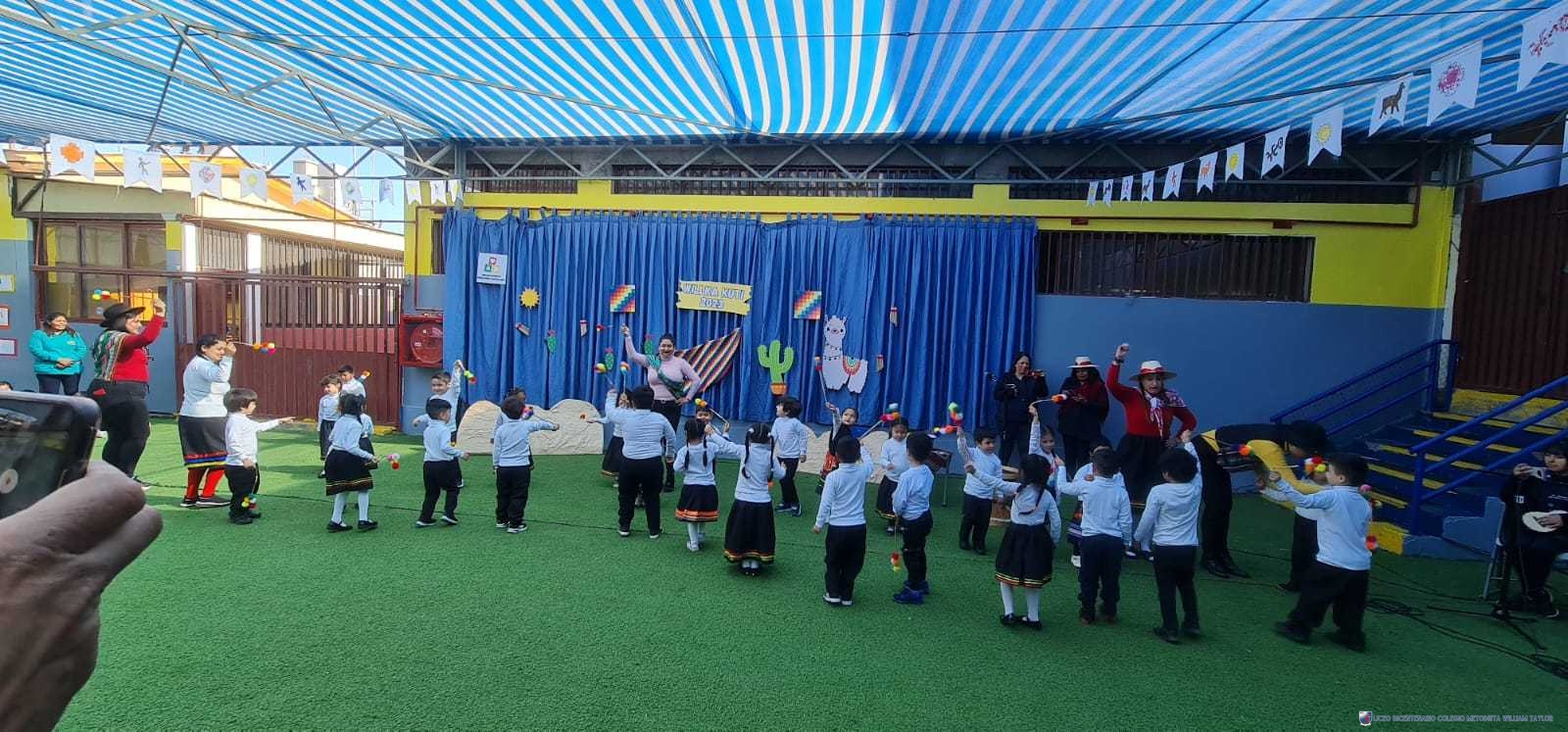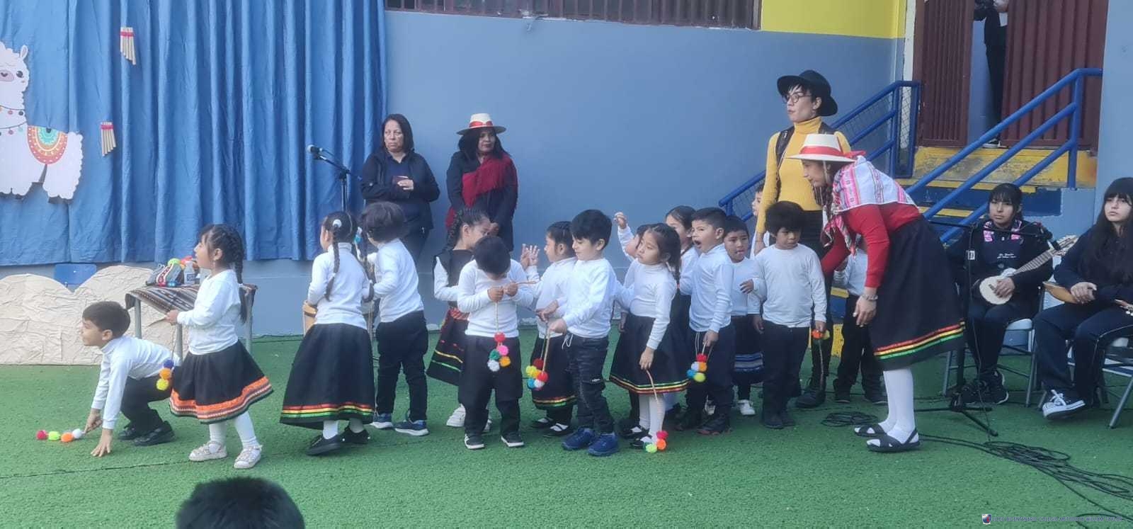 Los alumnos del prekínder B, liderados por la profesora Katherine Meneses, y acompañados por las asistentes técnicas, la profesroa de Lengua Aymara Lenka Gárate y las tías de pie, organizaron una jornada llena de actividades y enseñanzas para los niños y niñas de prekínder y kínder, con el objetivo de acercarlos a la cultura y cosmovisión aymara. Durante la semana previa, los estudiantes aprendieron sobre las tradiciones y rituales asociados al Willka Kut’i, así como su importancia para las comunidades indígenas.