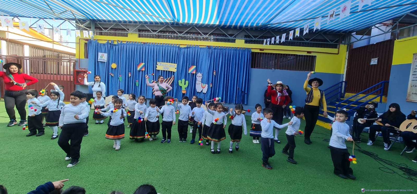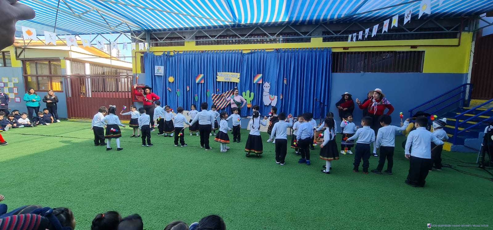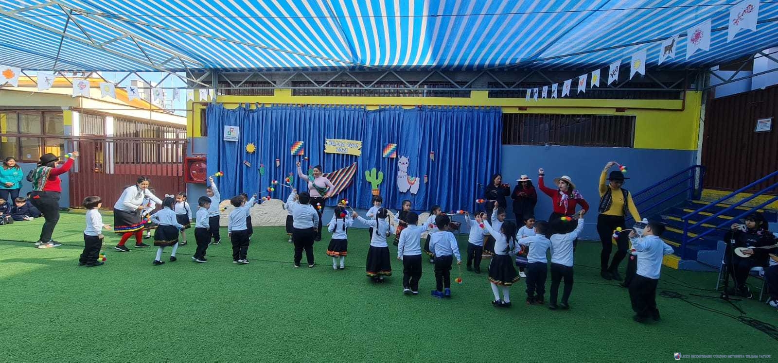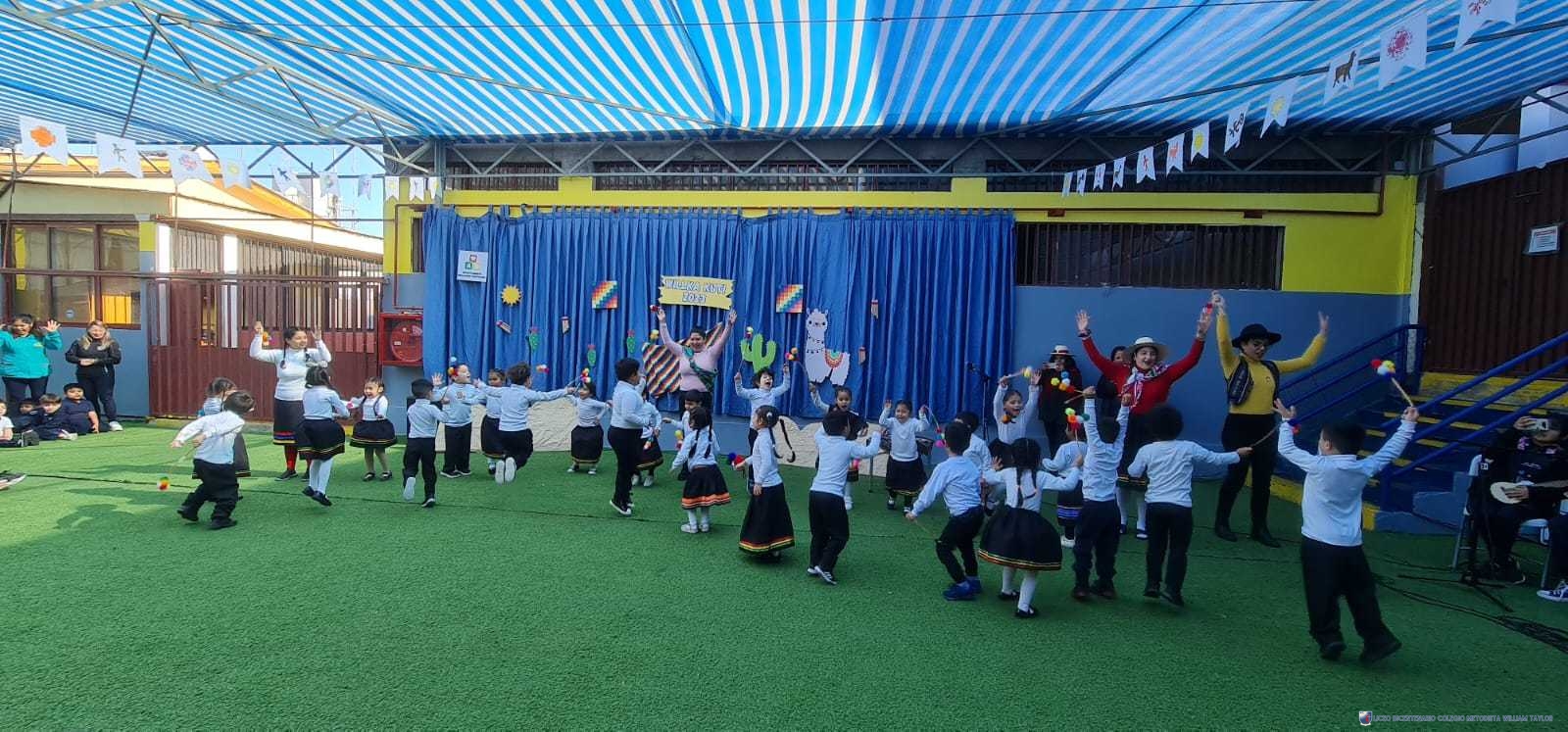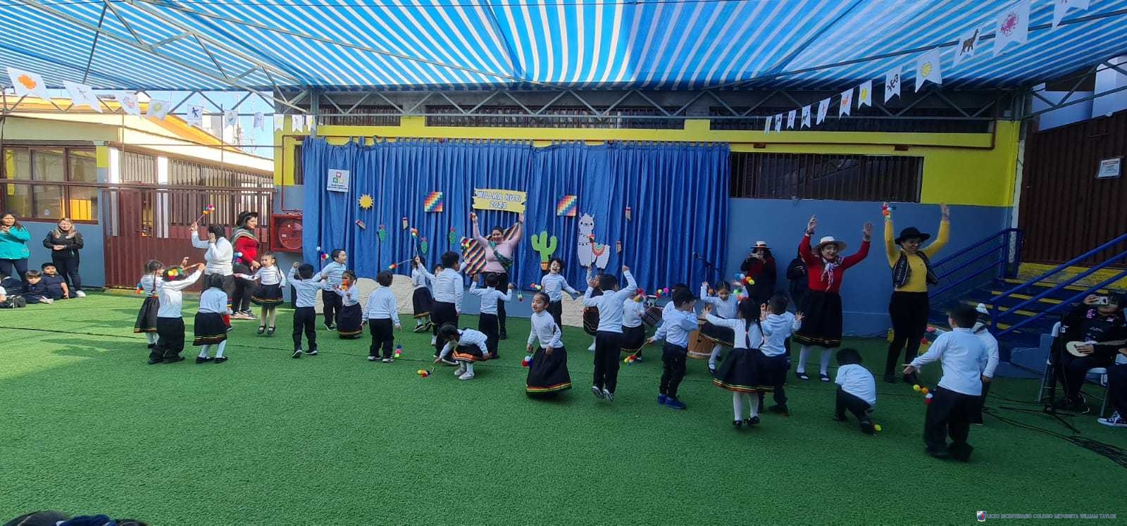 Los alumnos del prekínder B, liderados por la profesora Katherine Meneses, y acompañados por las asistentes técnicas, la profesroa de Lengua Aymara Lenka Gárate y las tías de pie, organizaron una jornada llena de actividades y enseñanzas para los niños y niñas de prekínder y kínder, con el objetivo de acercarlos a la cultura y cosmovisión aymara. Durante la semana previa, los estudiantes aprendieron sobre las tradiciones y rituales asociados al Willka Kut’i, así como su importancia para las comunidades indígenas.