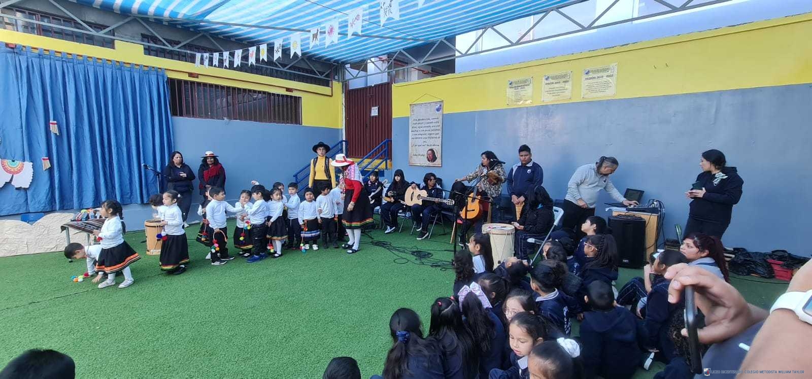 La presentación musical durante el evento fue realizada por la academia de música andina de nuestra institución, junto a su profesora Paloma Muñoz, entonaron diversas canciones las cuales los estudiantes y funcionarios tuvieron la oportunidad de disfrutar y bailar.