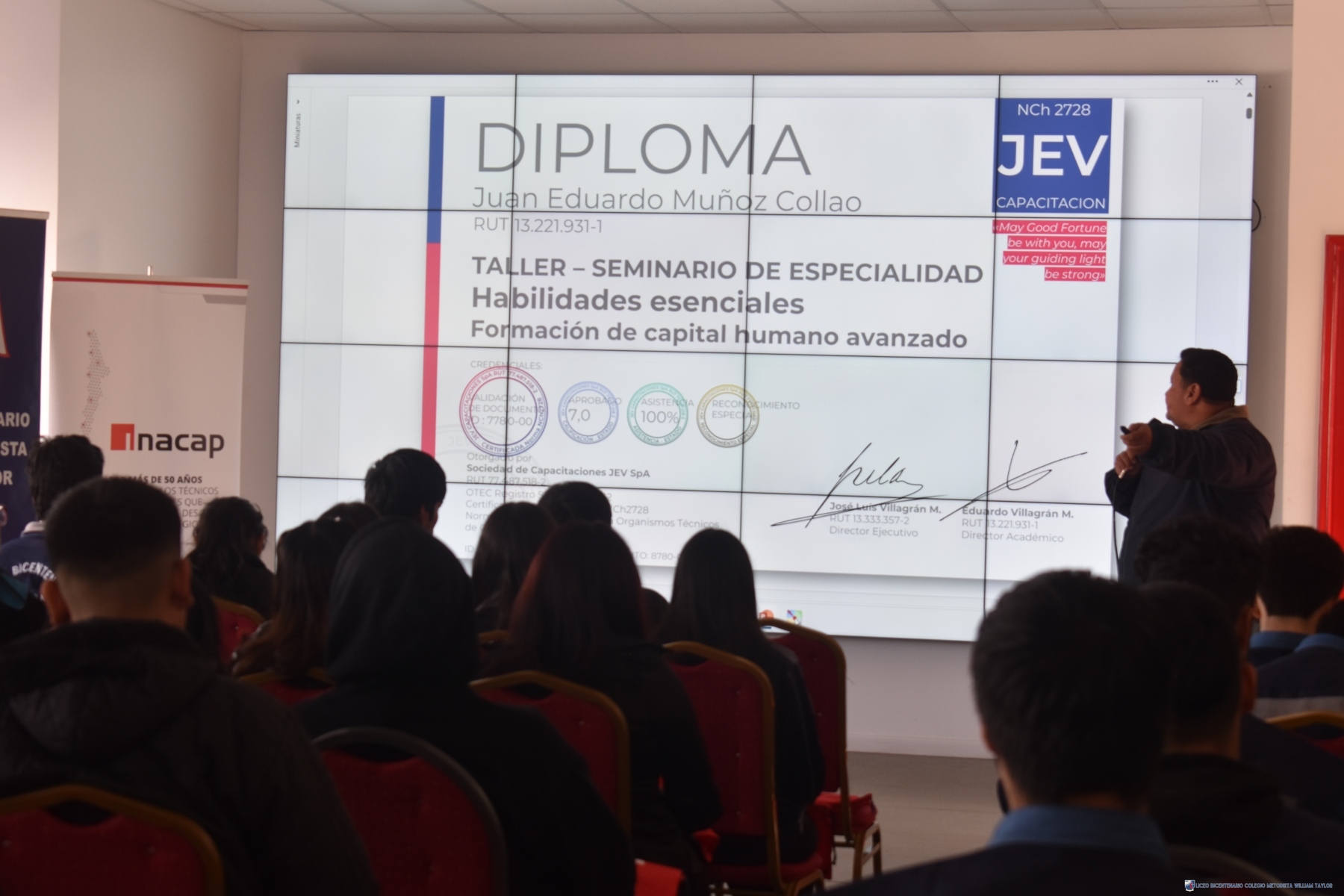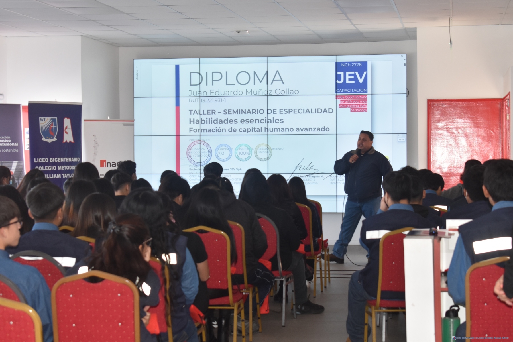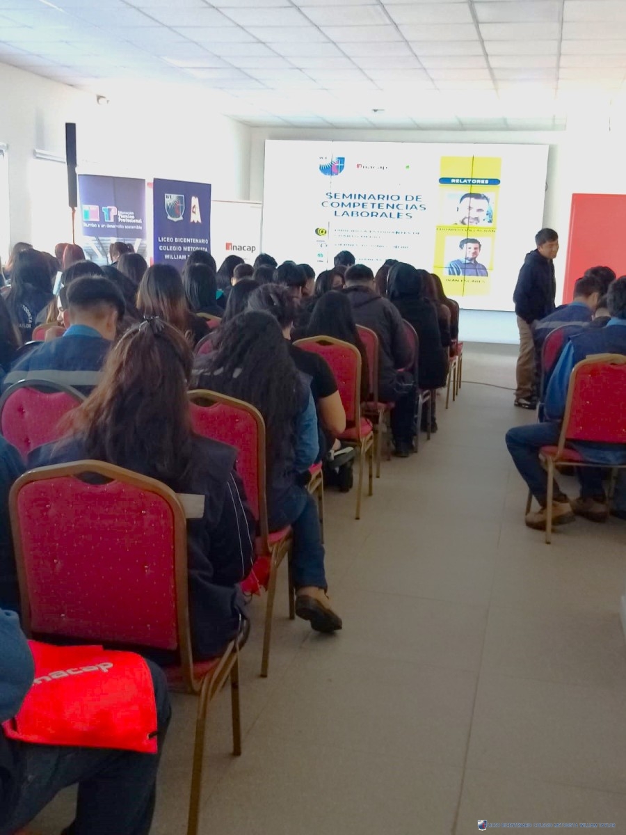 Esta semana, estudiantes de cuartos medios, asistieron al primer Seminario de Competencias Laborales, con la participación de los relatores Iván Escares (Conexium) y Eduardo Villagrán (INACAP). Su objetivo principal fortalecer y potenciar las competencias esenciales de la estudiantes de las 4 especialidades con foco en las habilidades y actitudes desde la mirada del sector empresarial acorde a la realidad del SXXI.