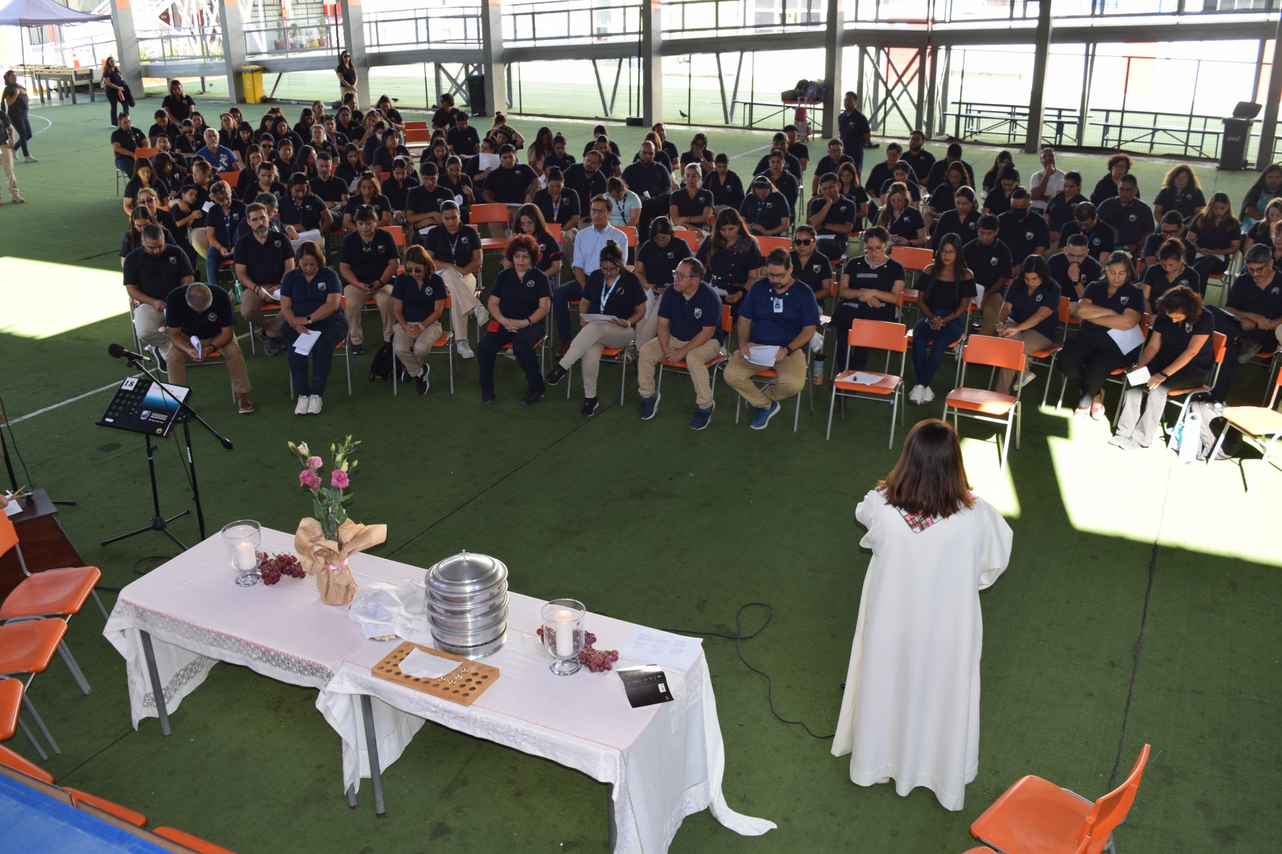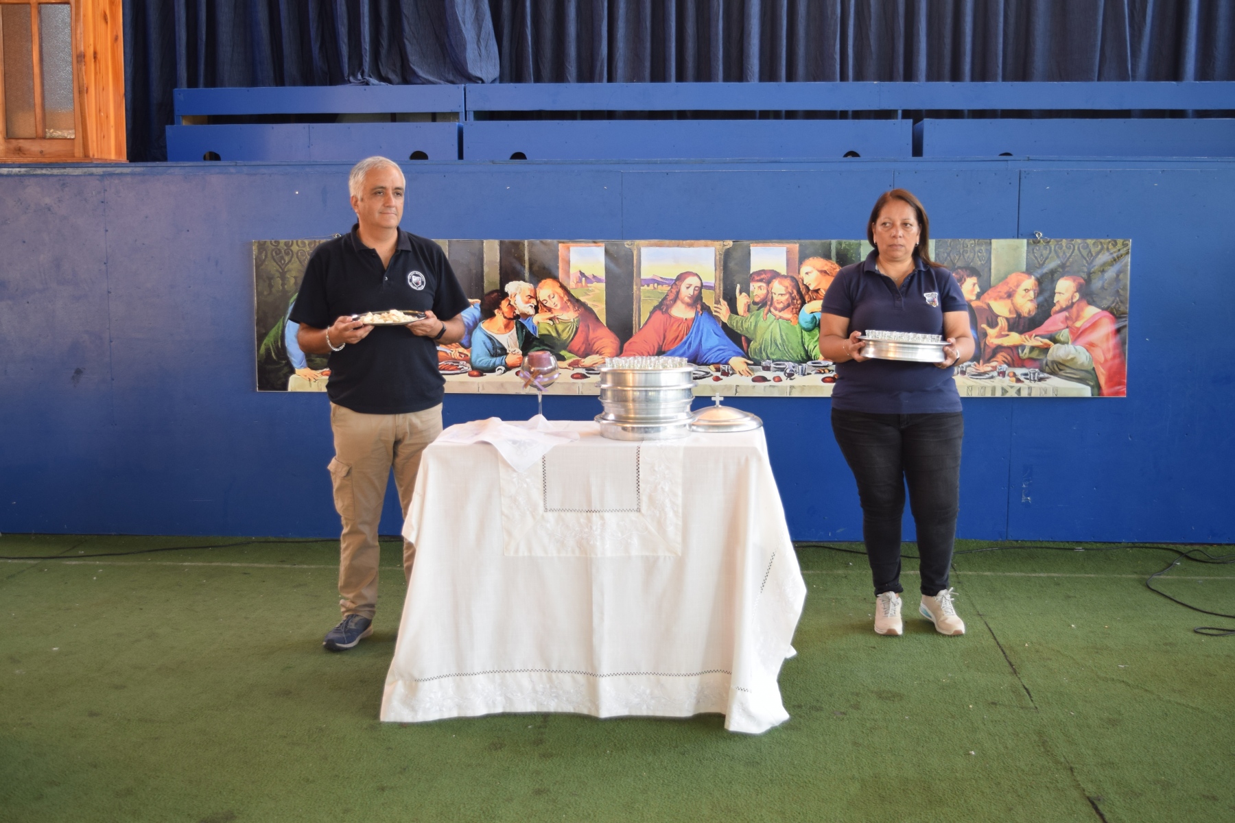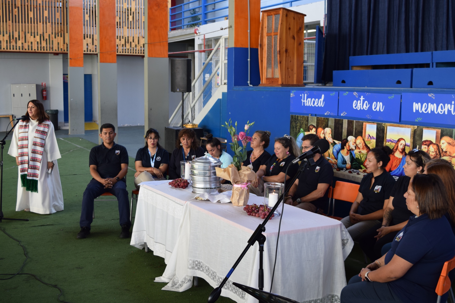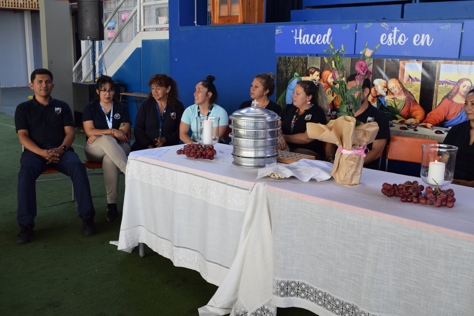 La Capellana dirigió la ceremonia y los participantes compartieron el pan y el vino como símbolos del cuerpo y la sangre de Cristo. La celebración de la Santa Cena es una tradición religiosa  que se realiza en conmemoración del sacrificio de Jesús en la cruz y su resurrección.