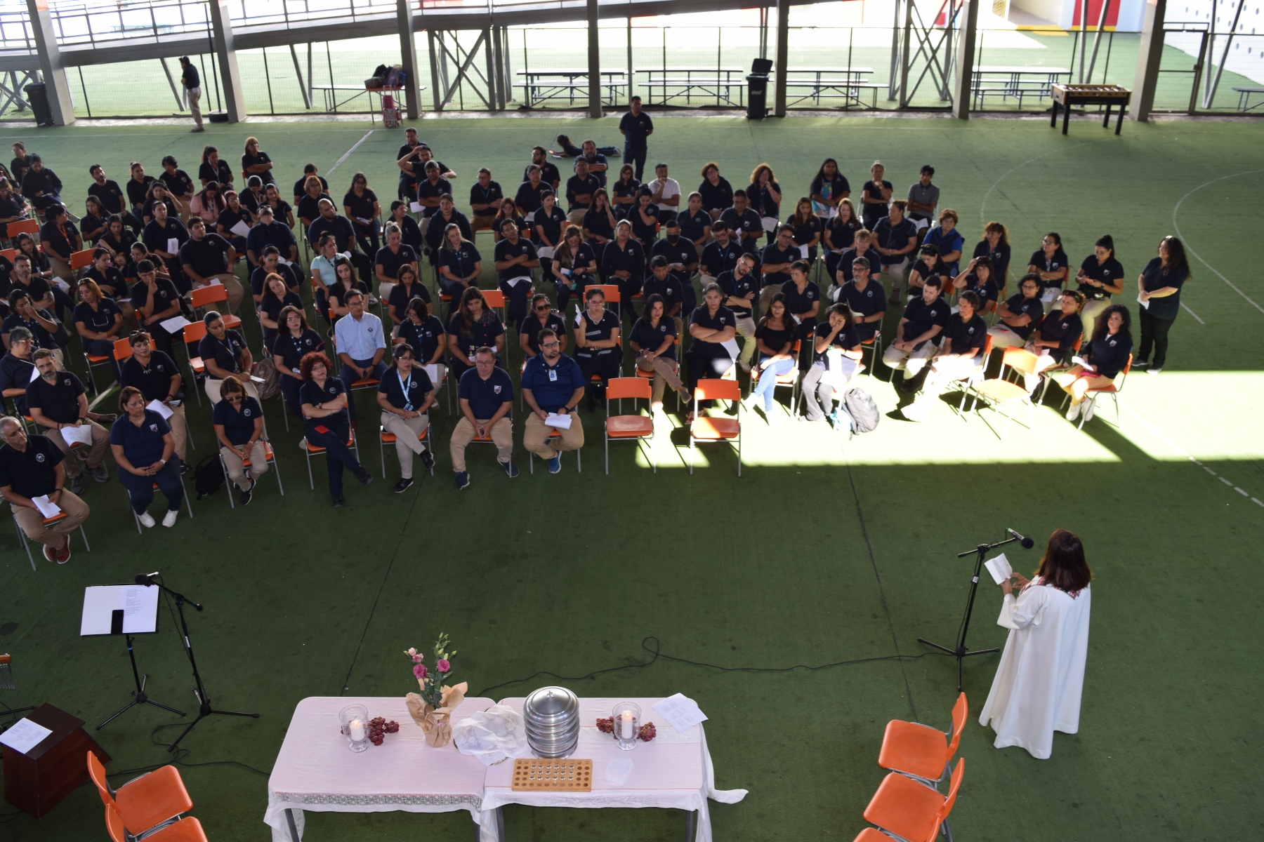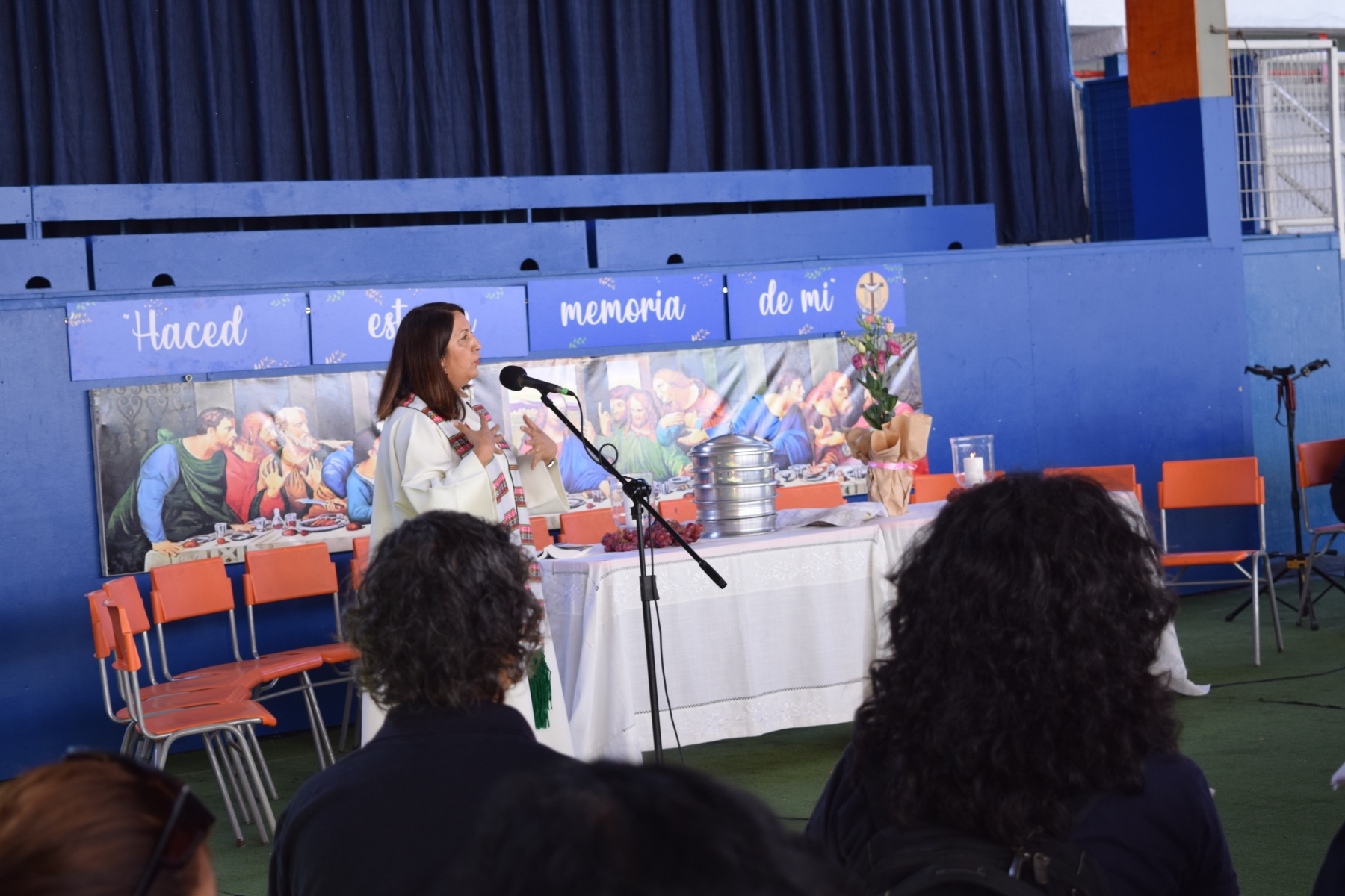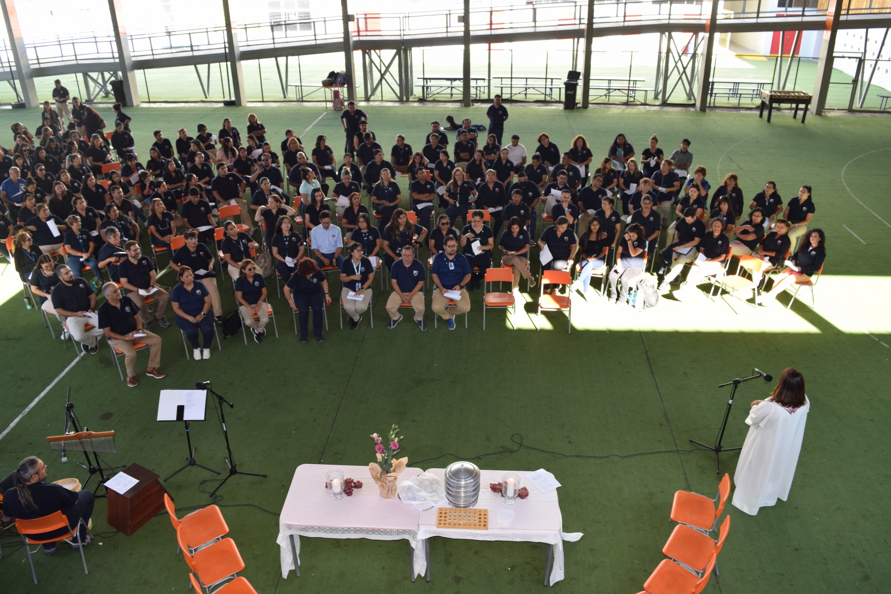 La Capellana dirigió la ceremonia y los participantes compartieron el pan y el vino como símbolos del cuerpo y la sangre de Cristo. La celebración de la Santa Cena es una tradición religiosa  que se realiza en conmemoración del sacrificio de Jesús en la cruz y su resurrección.