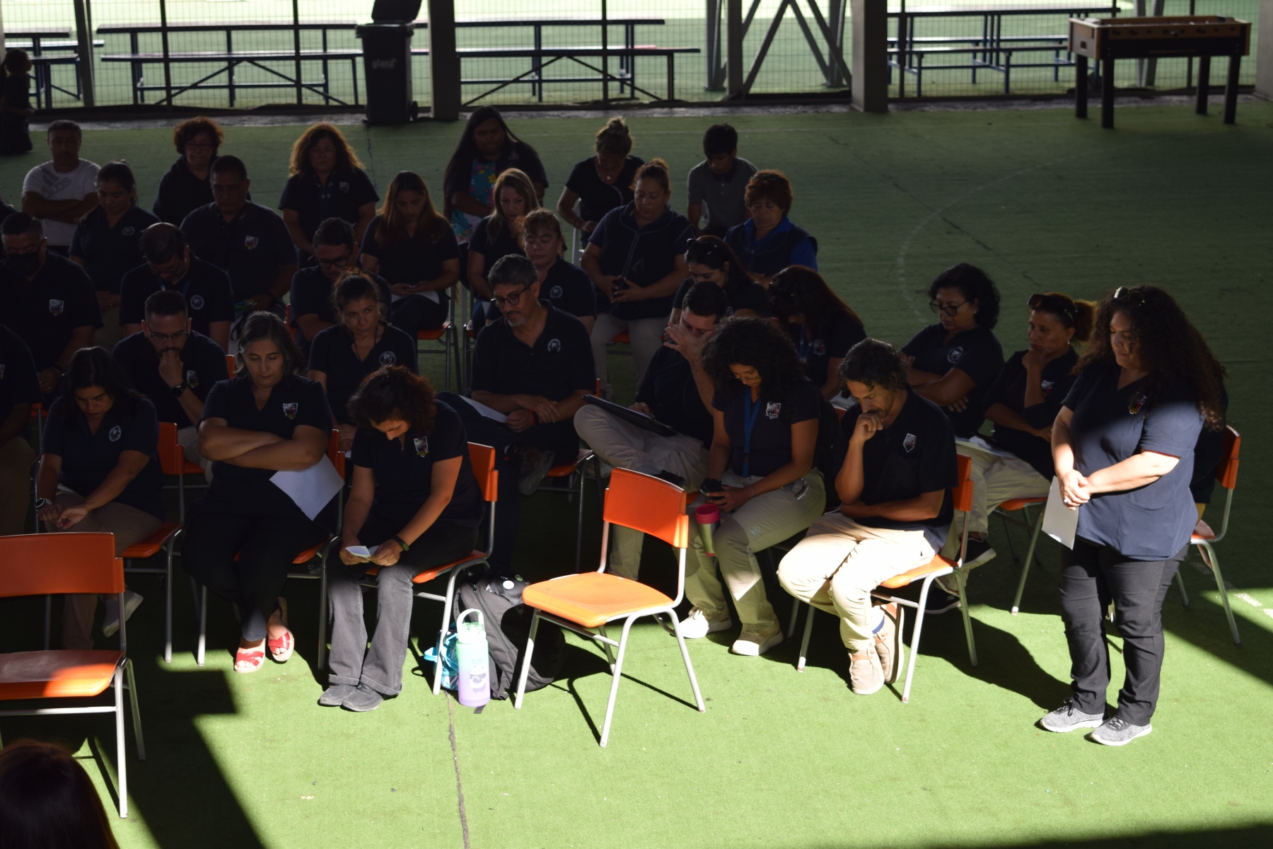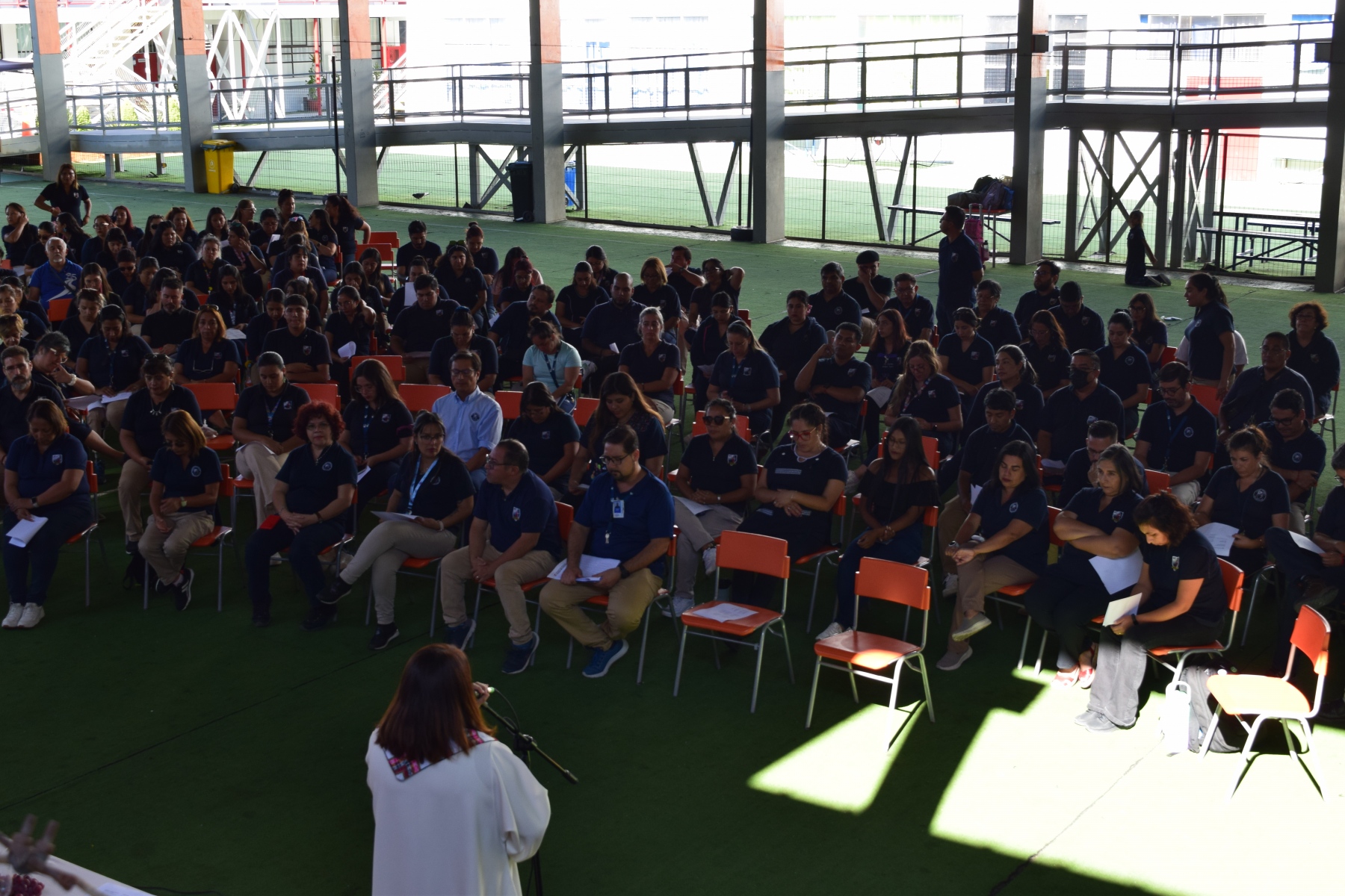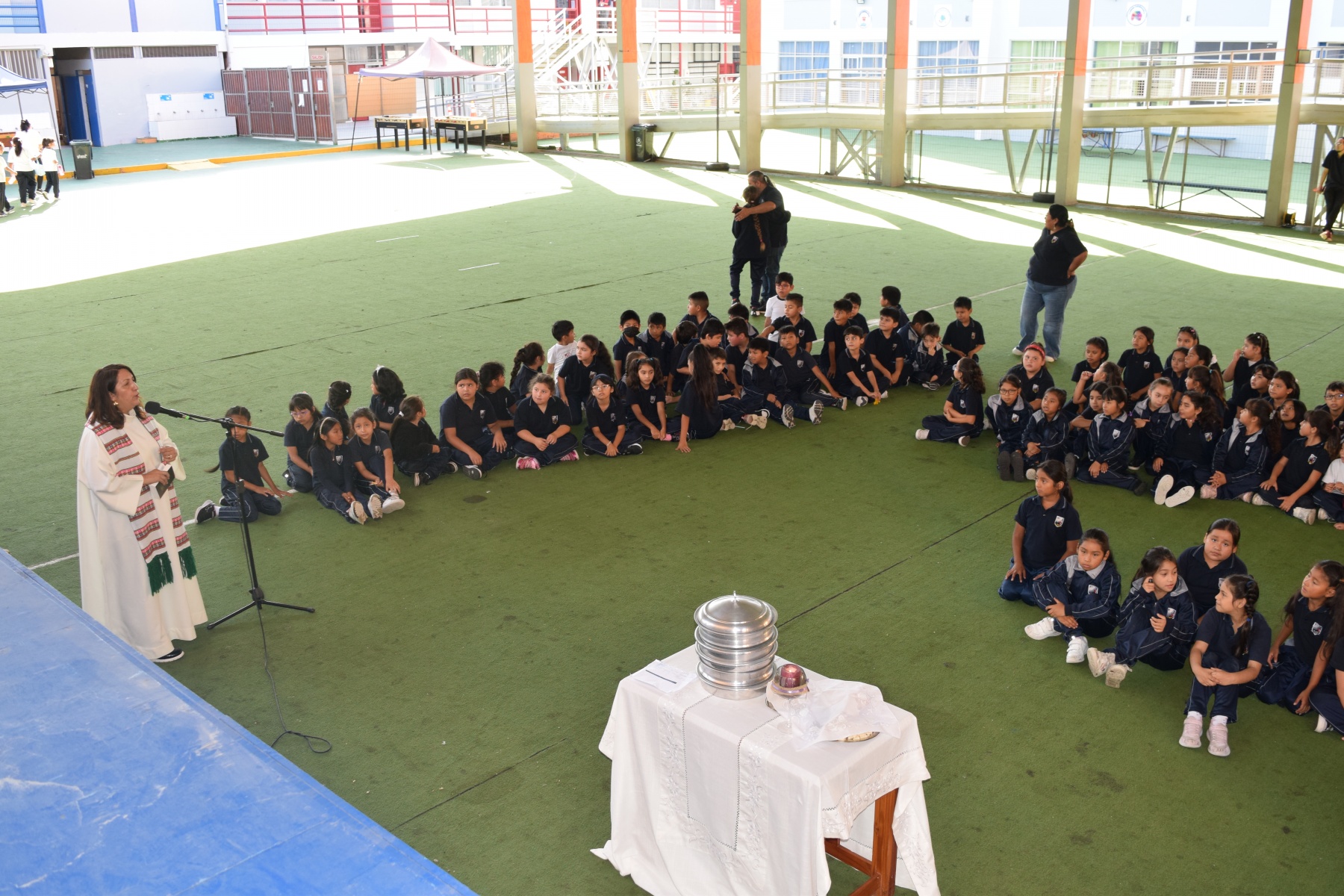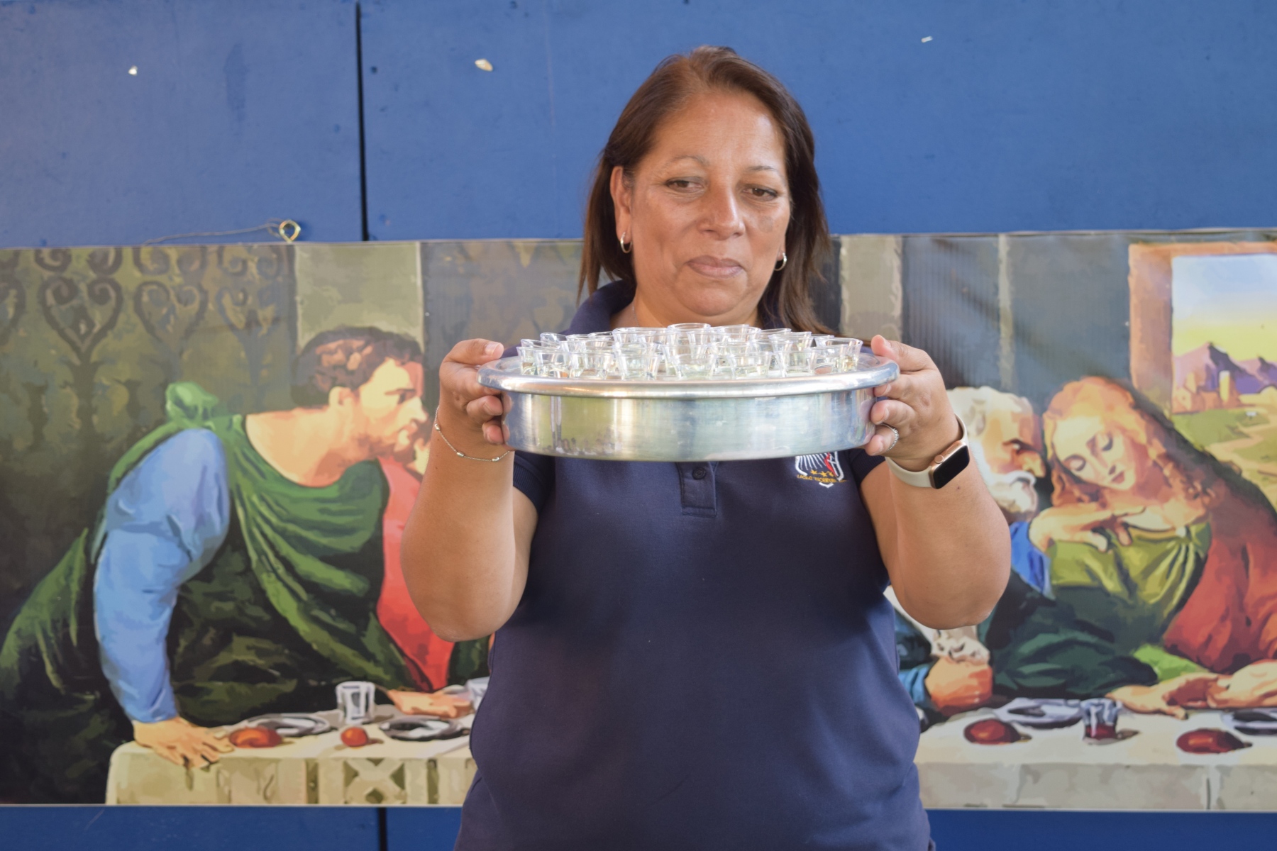 La Capellana dirigió la ceremonia y los participantes compartieron el pan y el vino como símbolos del cuerpo y la sangre de Cristo. La celebración de la Santa Cena es una tradición religiosa  que se realiza en conmemoración del sacrificio de Jesús en la cruz y su resurrección.